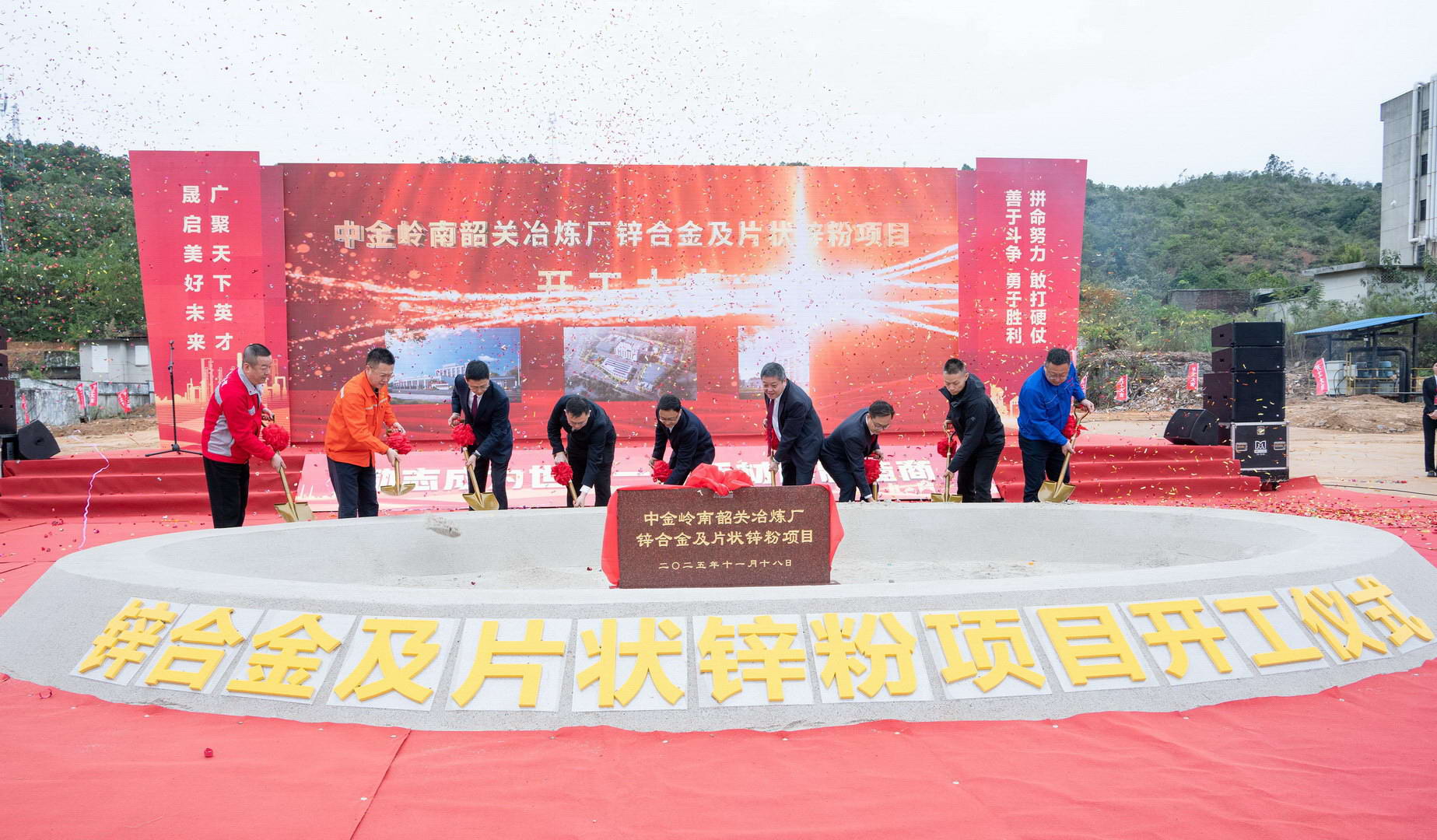 11月18日,由中国瑞林承担设计的中金岭南韶关冶炼厂锌合金及片状锌粉项目开工仪式,在广东韶关中金岭南(韶关)功能材料产业园隆重举行。中国瑞林党委委员文哲应邀出席,相关部门负责人陪同参加。